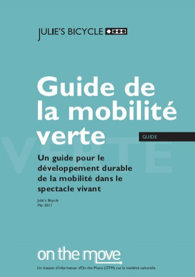 Le guide de la mobilité verte, commissionné par On the Move au groupe d’expert sur les questions environnementales Julie’s Bicycle en mai 2011, après une traduction partielle en français, est maintenant disponible dans sa totalité (glossaire inclus), grâce au soutien du Ministère français de la Culture et de la Communication.